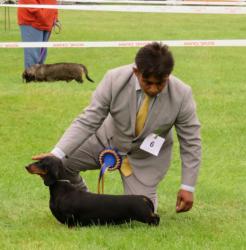 2. Starkey's CH. Carpaccio Jasper from Hamoura ShCM. VW, B/Tan 10 year old who has a consistent winning career behind him and certainly still maintains it. Won his 1st CC. from Minor Puppy and has been steady and consistent ever since. Moved with purpose and precision, kept a correct outline and was sound all round. Not an easy decision for me with two such lovely exhibits.